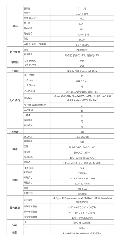 • 7" 1024 x 600 IPS LCD, LED背光燈